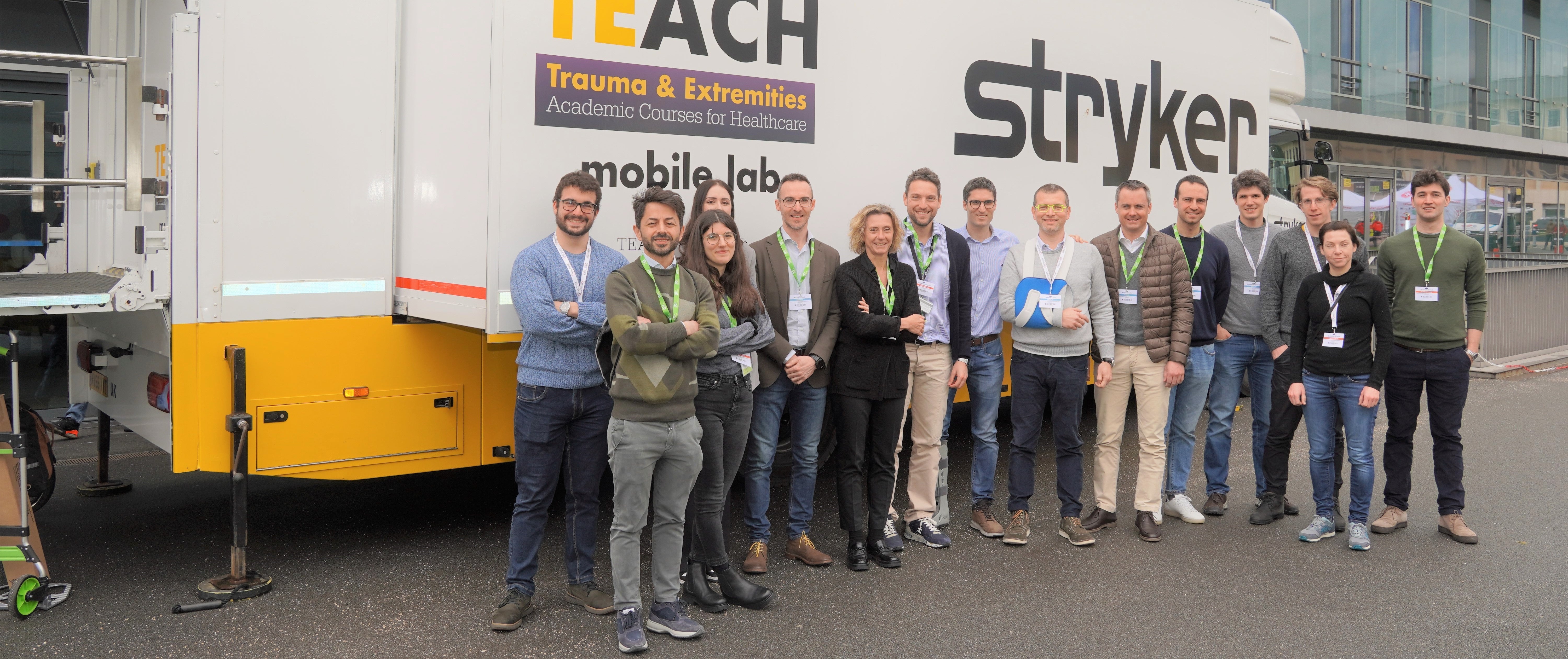 L’inusuale sede del corso teorico-pratico è stata un “truck” itinerante, parcheggiato in prossimità della Nuova Clinica dell’Ospedale di Bolzano, nel quale i partecipanti hanno avuto occasione di apprendere e mettere in pratica tecniche chirurgiche per il trattamento di fratture su riproduzioni ossee attraverso l’impiego di strumentari e materiali di osteosintesi.